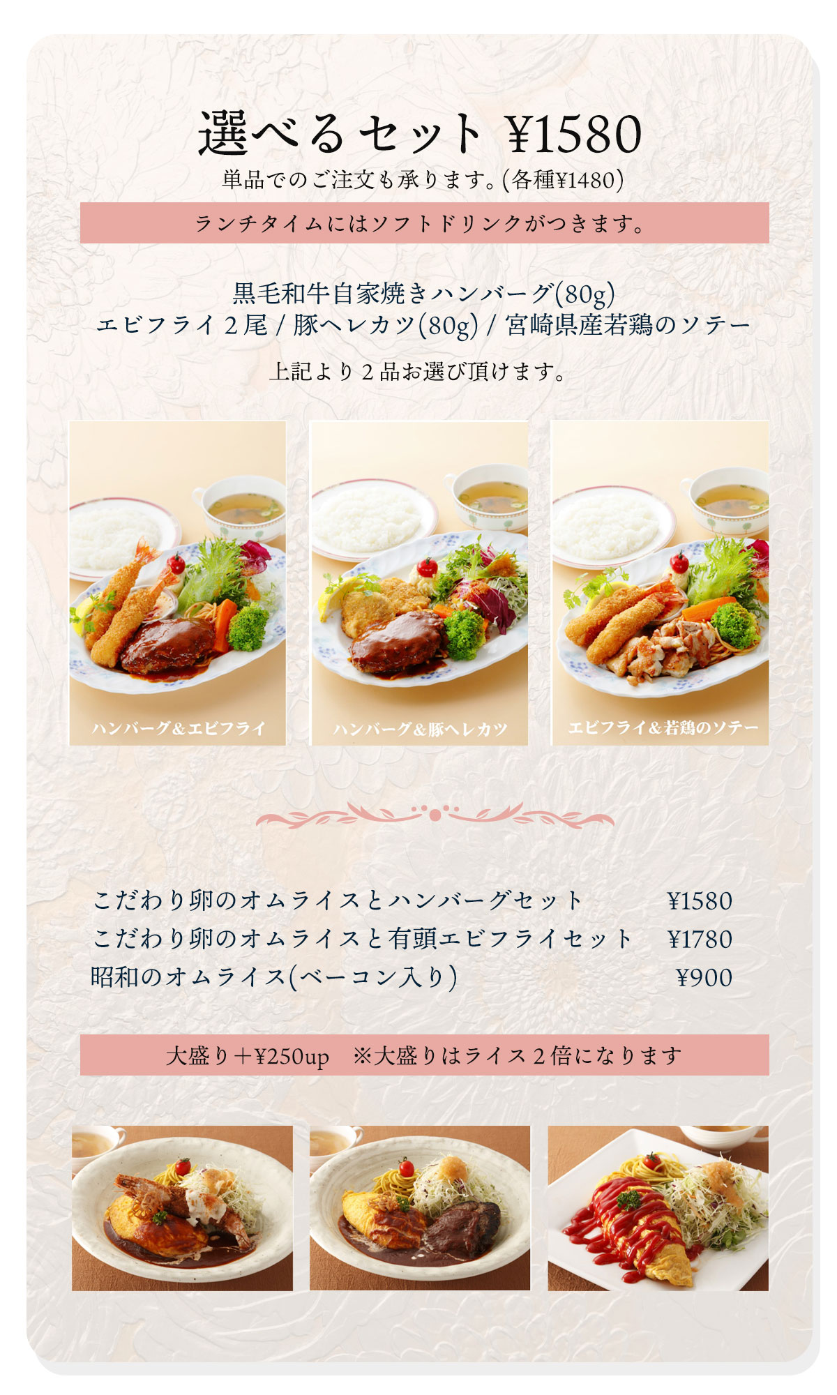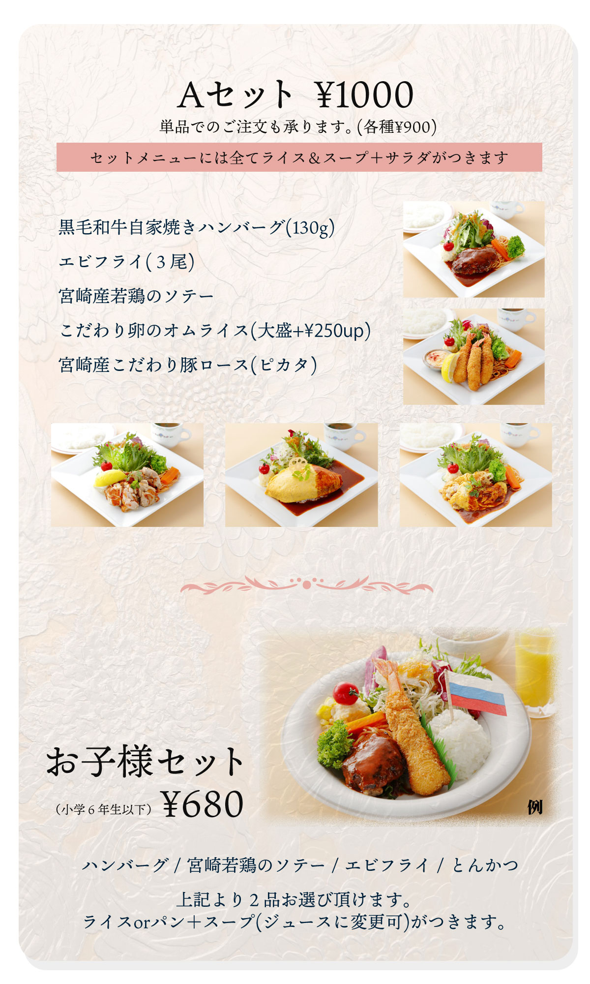※お弁当のテイクアウトのお時間はTELにてご相談に応じます。